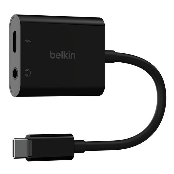 Адаптер Belkin RockStar 3.5mm Audio + USB-C Charge Adapter выполнен в стильном цвете, что делает его привлекательным и современным аксессуаром.