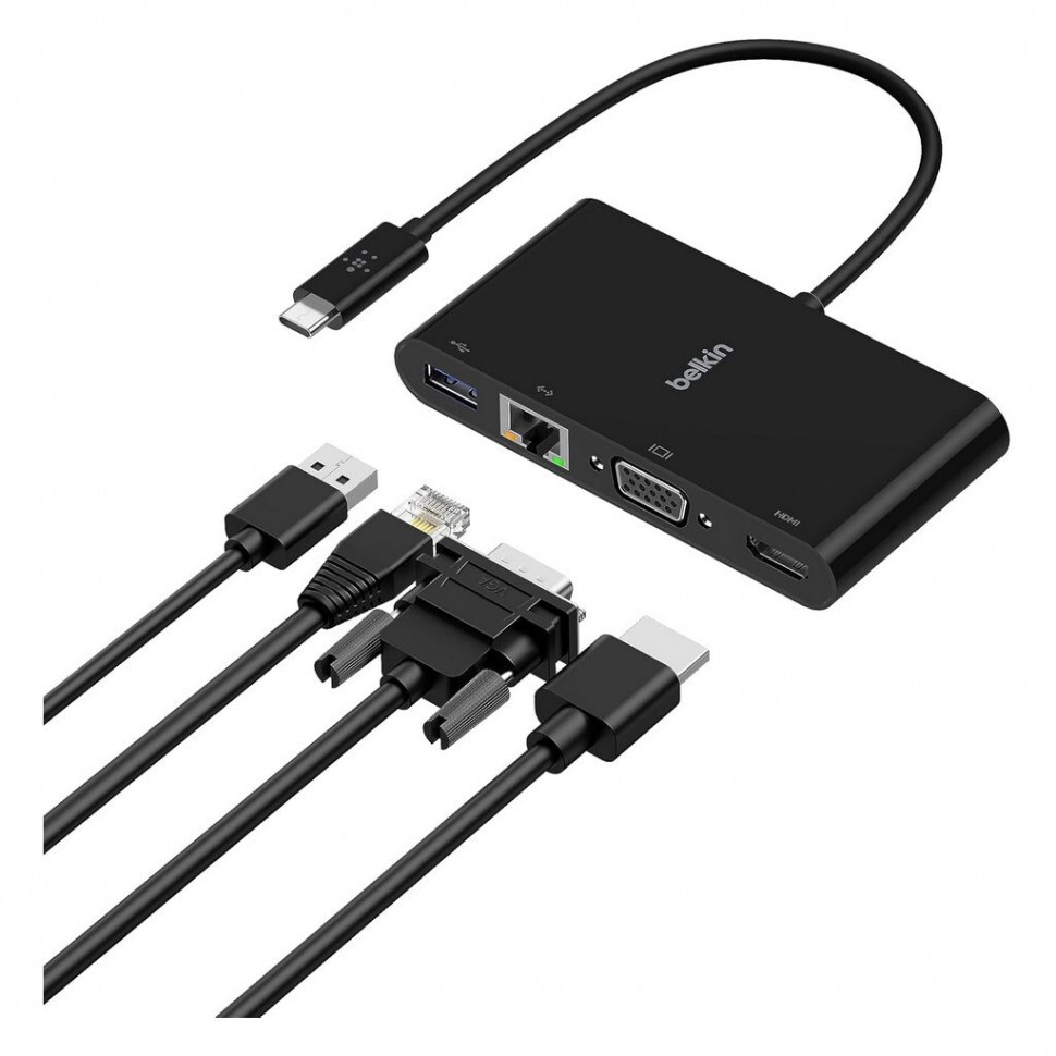 Адаптер Belkin USB-C - Ethernet, HDMI, VGA, USB-A, (AVC005BTBK), черный – купить за 6 000 ₽ | Мир гаджетов