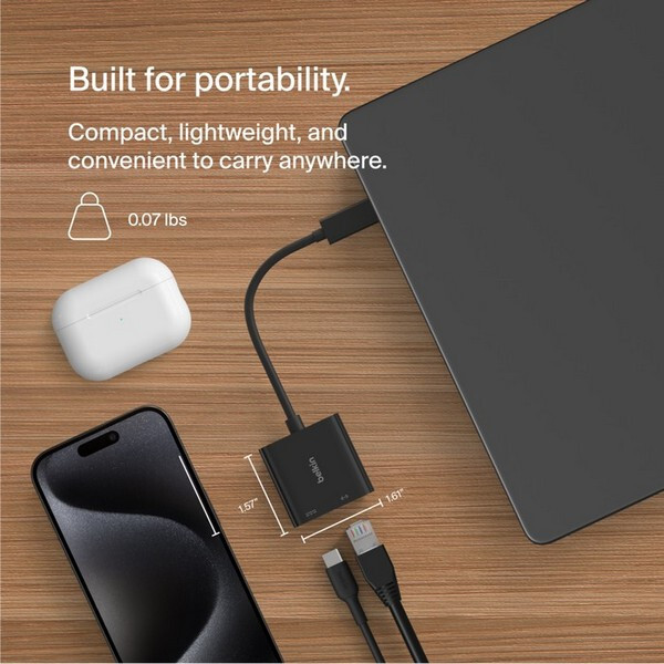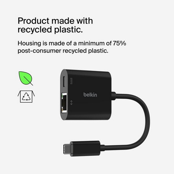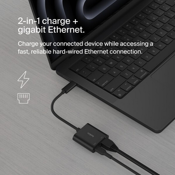 Адаптер Belkin USB-C to Ethernet (INC019BTBK) черный - увеличьте свою мощность с помощью этого компактного адаптера USB-C Ethernet. Наслаждайтесь 100 Вт USB-C Power Delivery плюс гигабитное Ethernet-соединение с поддержкой 10/100/1000 Мбит/с. Его легкая конструкция позволяет легко работать в любом месте без хлопот с громоздким адаптером.