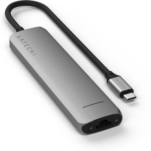Адаптер Satechi 7-in-1 USB-C Slim Multiport Adapter with Ethernet (ST-P7SM) Space Gray легко объединяет семь портов в одно компактное устройстве: Gigabit Ethernet, 4K HDMI (30 Гц), USB Type-C PD, два порта USB-A 3.2 и слот для чтения карт памяти micro SD/SD.
