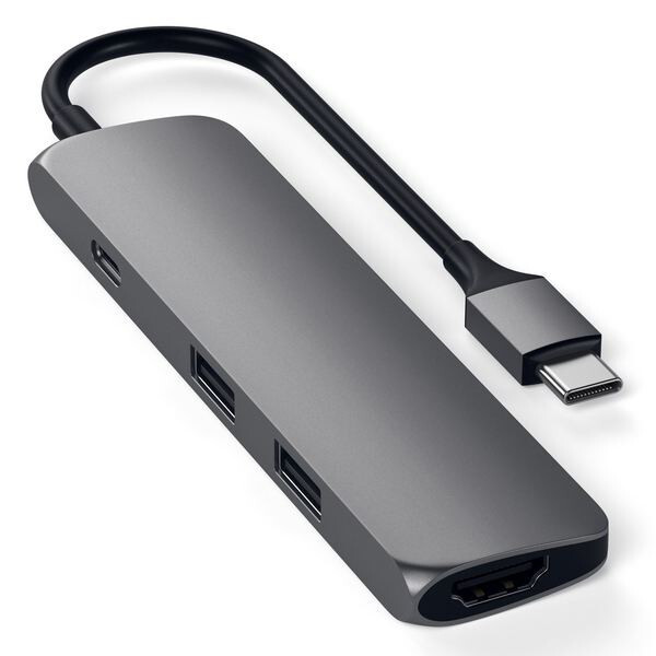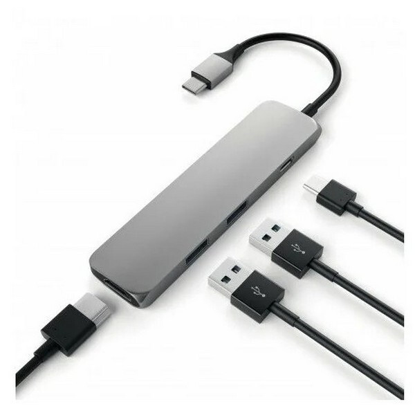 Адаптер Satechi Slim Aluminum Type-C Multi-Port Adapter 4K (ST-CMAM) Space Gray добавляет множество соединений к вашему ноутбуку или настольному компьютеру, просто используя один порт Type-C. Добавьте к компьютеру 4K HDMI (до 60 Гц), сквозную зарядку и два порта USB Type-A.