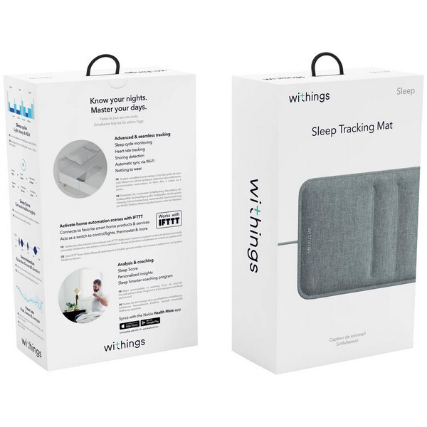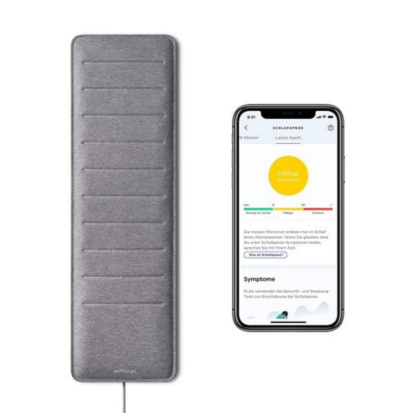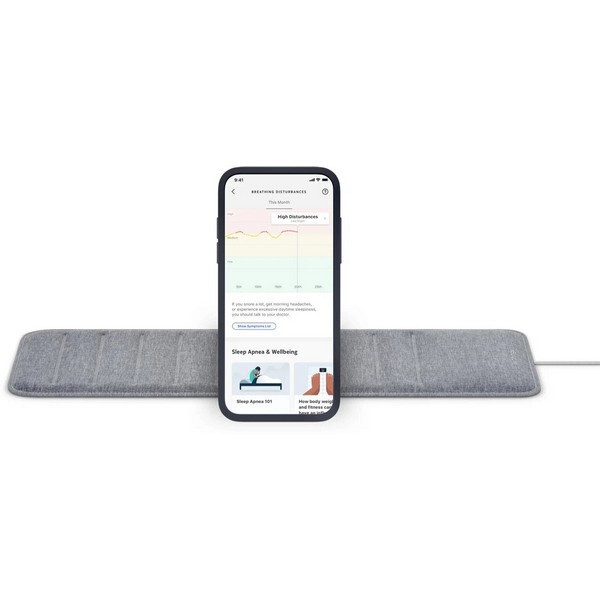 Анализатор сна Withings Sleep Analyzer (WSM02) - это интеллектуальный коврик, помещаемый под матрас, он отслеживает качество сна, записывает процесс храпа и частоту сердечных сокращений, а также обнаруживает апноэ. Sleep Analyzer записывает и рассчитывает параметры вашего сна в режиме реального времени. Коврик для мониторинга сна Withings Sleep Analyzer оснащен рядом передовых датчиков, которые контролируют цикл сна (разделенный на легкий сон, глубокий сон и фазу быстрого сна). Они также отслеживают частоту сердечных сокращений и дыхание, регистрируют храп и апноэ во сне. В приложении Health Mate данные каждого измерения сохраняются автоматически.