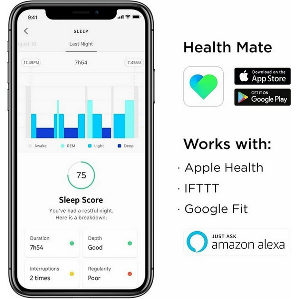 Диагноз апноэ во сне, подтвержденный медицинской справкой. Апноэ во сне - серьезное и опасное состояние, о котором мы часто не знаем. Это вызывает усталость и может иметь очень серьезные последствия для здоровья - высокое кровяное давление, сердечную аритмию, инсульты и сердечную недостаточность. По оценкам, у 1 из 5 взрослых есть апноэ во сне, и 80% из них не подозревают об этом. Каждый день анализатор сна предоставляет вам полный набор точных данных и полезной информации о вашем здоровье. Проснись и проверь, как ты спал! Как только вы встаете с постели, анализатор сна мгновенно синхронизирует все данные с вашей учетной записью Health Mate. Точные и понятные данные помогут вам быстро узнать, как улучшить качество вашего сна. Приложение Health Mate хранит все данные о вашем здоровье, вы можете отправить их своему врачу или показать их в любое время во время приема.