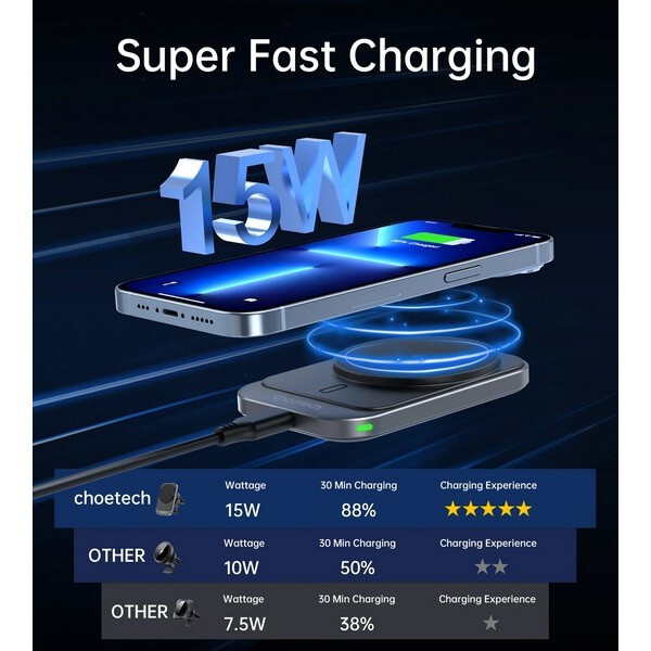 Крепление Choetech T206-F оснащено интерфейсом USB-C, поддерживающим входное напряжение 5-12 В при 2 А. Максимальная выходная мощность 15 Вт обеспечивает быструю и эффективную зарядку, что очень важно для длительных поездок или интенсивного использования мобильных устройств.