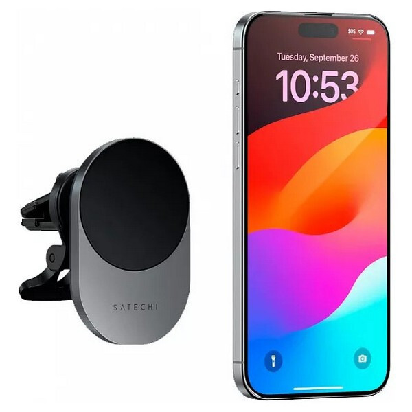 Автомобильное беспроводное зарядное устройство Satechi Qi2 Wireless Car Charger 15W (ST-Q2CCM) серый сочетает современный дизайн и удобство использования. Компактные размеры (длина 9,2 см, ширина 5,97 см, высота 2,8 см) и легкий вес (75,8 г) делают его идеальным для установки в автомобиле. Благодаря поддержке быстрой беспроводной зарядки мощностью 15 Вт с сертификацией Qi2 и совместимостью с MagSafe, ваш смартфон всегда будет заряжен.