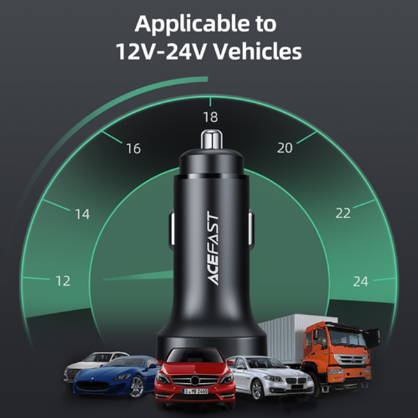 Быстрое автомобильное зарядное устройство Acefast B2 имеет 2 порта USB Type-C. Оба разъема USB Type-C позволяют заряжать с максимальной мощностью 36 Вт (вместе 72 Вт). Также, автозарядка позволяет выполнять быструю зарядку, в том числе в стандартах PPS, Power Delivery, Quick Charge 3.0, AFC и FCP. Данная автозарядка способна заряжать практически любые портативные устройства, начиная от обычного фонарика и заканчивая электронной книгой.
