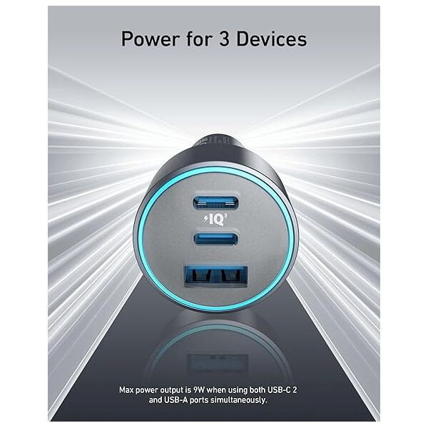 Одновременная зарядка: заряжайте до трех устройств одновременно с общей мощностью 67 Вт, используя два порта USB-C и один порт USB-A. Когда все три устройства подключены, порт USB-C обеспечивает мощность 45 Вт посредством зарядки Pps/Pd.