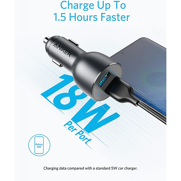 Двойные порты. Автомобильное зарядное устройство Anker PowerDrive III обычно оснащено двумя портами USB, что позволяет одновременно заряжать два устройства в пути.