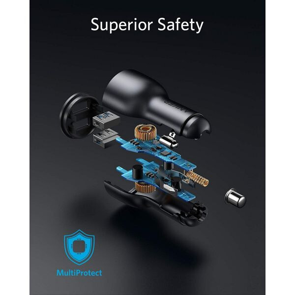 Компактный дизайн. Компактный и минималистичный дизайн автомобильных зарядных устройств Anker позволяет легко вставлять их в автомобильную розетку, не мешая другим функциям и не создавая беспорядка.