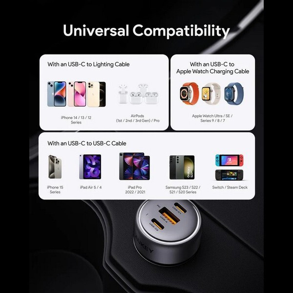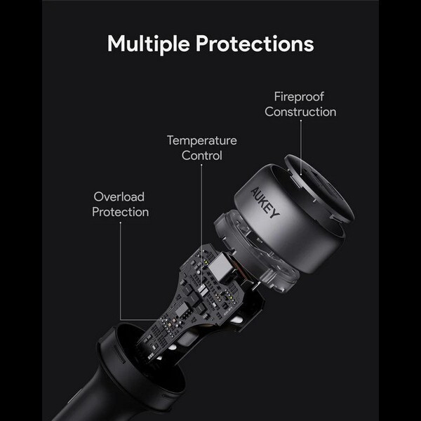 Стильный серый корпус Aukey Pathfinder Mix 3 66W отлично впишется в интерьер любого автомобиля, а прочные материалы обеспечивают долговечность даже при активном использовании. Устройство надежно защищено от перегрева, короткого замыкания и перегрузок, что делает его безопасным для ваших гаджетов.