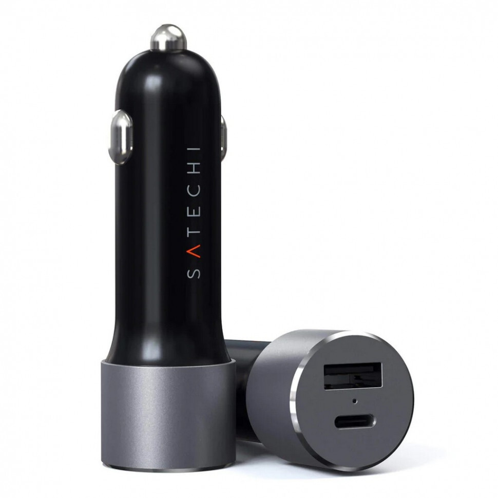 Автомобильное зарядное устройство Satechi Type-C PD 72W Car Charger ST-TCPDCCM, серый космос. Используя новейшую технологию Power Delivery, автомобильное зарядное устройство мощностью 72 Вт обеспечивает до 60 Вт от своего порта USB-C для быстрой зарядки совместимых ноутбуков, планшетов и смартфонов и дополнительного порта USB-A для одновременного питания другого устройства мощностью до 12 Вт.