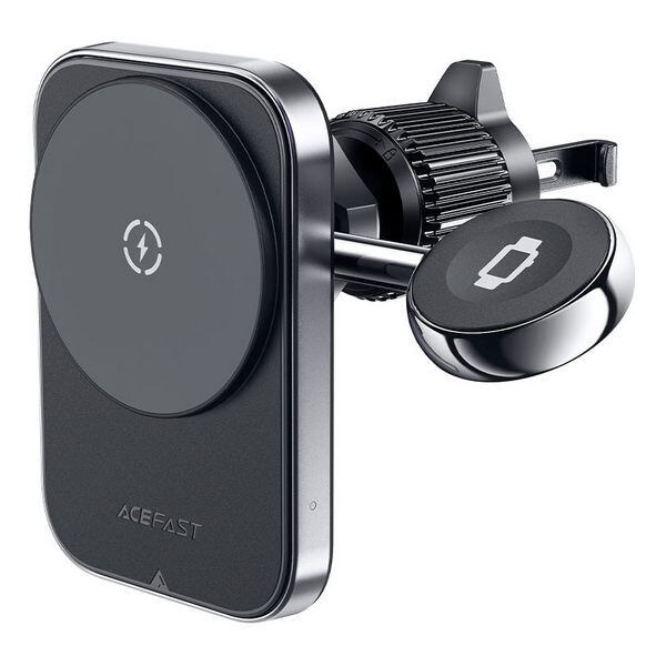 Автомобильный магнитный держатель AceFast D18 2-in-1 с функцией беспроводной зарядки (AF-D18-BK) Black позволяет заряжать и удерживать два устройства одновременно: мобильный телефон и часы. Установка держателя осуществляется с помощью зажима/клипсы на вентиляционной решетке автомобиля. Возможность вращения устройства на 360 градусов позволяет выбрать нужное положение для просмотра информации на экране. ACEFAST D18 оснащен функцией беспроводной зарядки мощностью 17.5 Вт и позволяет заряжать устройства прямо во время поездки.