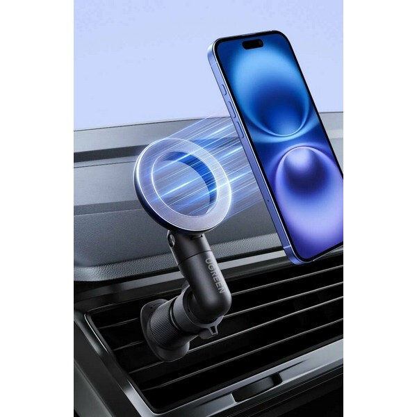 Автомобильный магнитный держатель для телефона Ugreen LP923 Air Vent Magnetic Car Phone Mount (65185) серый космос устанавливается на вентиляционную решетку. Фиксация смартфона производится с помощью магнита. Аксессуар рассчитан на нагрузку до 2.5 кг. Держатель поддерживает вращение на 360° и изменение угла наклона.