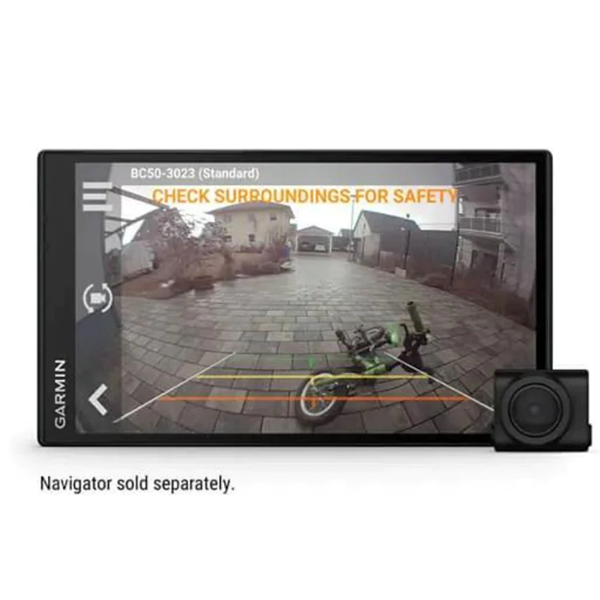 Беспроводная камера заднего вида Garmin BC 50 — беспроводная камера заднего вида с держателем номерного знака. Она обеспечивает более безопасное резервное копирование даже с более крупными автомобилями или прицепами. Четкое изображение с беспроводной камеры заднего вида отображается на вашем совместимом навигационном устройстве.