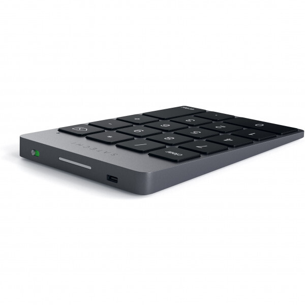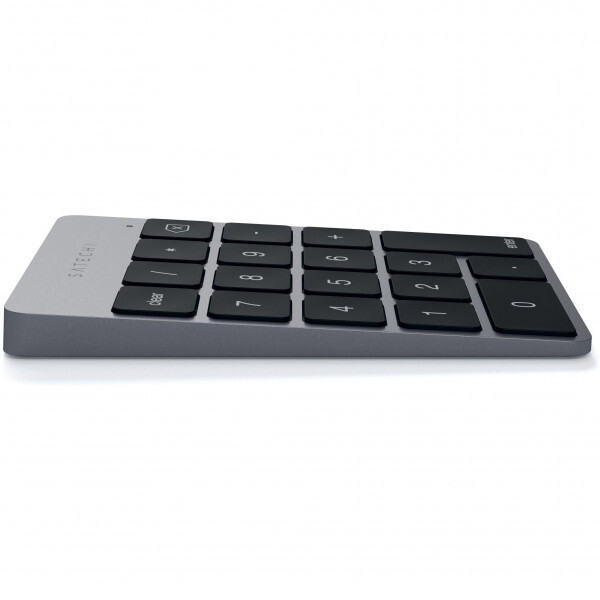 Беспроводная клавиатура Satechi Slim Rechargeable Aluminum Bluetooth Keypad - удобное дополнение к клавиатуре для быстрого ввода цифровых данных. Устройство представлено в компактном металлическом корпусе серого цвета. Благодаря низкопрофильному дизайну клавиши нажимаются тихо, не беспокоя вас или окружающих. Устройство работает благодаря беспроводной технологии Bluetooth. Батареи хватит примерно на 2 недели ежедневного использования. Компактное устройство весит всего 100 г и имеет размеры 7,93x0,78x11,43 см.