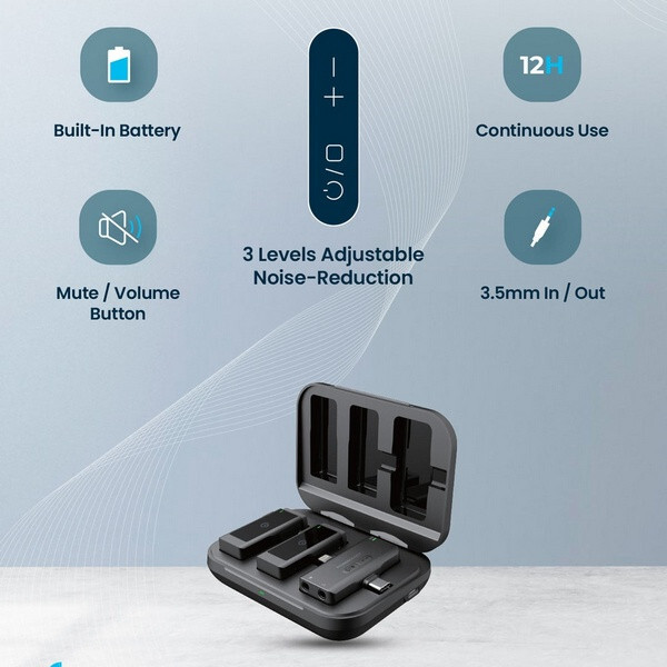 Беспроводной микрофон Powerology MFI Dual Connector Wireless Lavalier Microphone x1 Mic 1000mAh (PWMICBK) Black - это тонкое, легкое, элегантное и эффективное аудиорешение, разработанное специально для пользователей iPhone и iPad, которое поставляется с приемником и заряжаемым чехлом с разъемом Type-C. Благодаря дальности передачи 120 метров, 12-часовому времени непрерывной работы и быстрой 2-часовой перезарядке вы сможете наслаждаться непрерывной записью. Входные и выходные порты 3,5 мм обеспечивают удобство использования и гибкость, делая это устройство совместимым с широким спектром аудиооборудования и позволяя вам наслаждаться живыми выступлениями, подкастами или видеозаписями в качестве, как никогда прежде. Кнопки отключения звука и регулировки громкости микрофона обеспечивают легкое управление, а его совместимость с разъемами Lightning и Type-C расширяет возможности его использования на нескольких устройствах. С беспроводным петличным микрофоном Powerology пользователи могут наслаждаться беспроводным и превосходным качеством звука, что делает его идеальным для создателей контента, докладчиков и музыкантов.