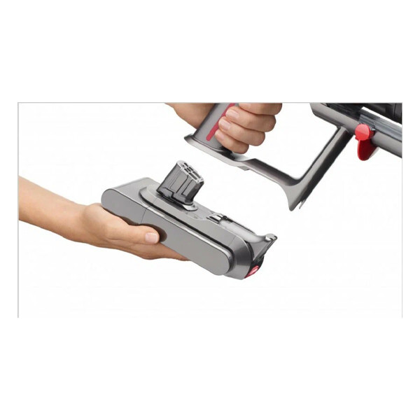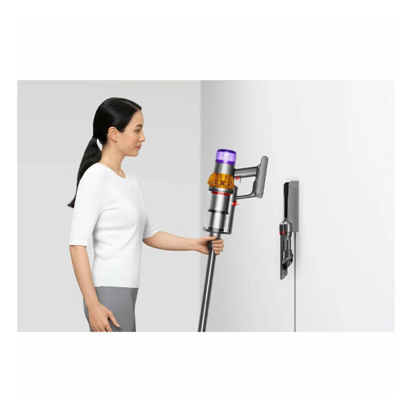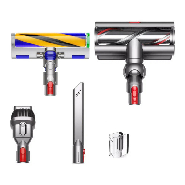 Двигатель Dyson Hyperdimium генерирует мощность всасывания до 240 аВт, при этом пылесос способен работать от одного заряда аккумулятора до одного часа, а при использовании моторизованных насадок время работы может быть ещё больше. Контакты для моторизованных щёток обеспечивают их питание прямо от пылесоса, а также позволяют регулировать мощность на основе умных автоматических алгоритмов V15 Detect Absolute.
