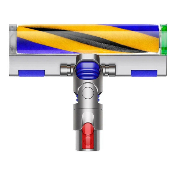 Моторизованная щётка для ковровых покрытий примечательна цилиндрическим мотором со спиральными элементами. Специальный переключатель позволяет регулировать прижим насадки, а в автоматическом режиме щётка регулирует мощность, подстраиваясь под тип покрытия. Как и в двух других моторизованных насадках из комплекта V15 Detect Absolute, здесь есть удобный шарнирный механизм, обеспечивающий возможность поворота на 90 градусов для максимально комфортной уборки.