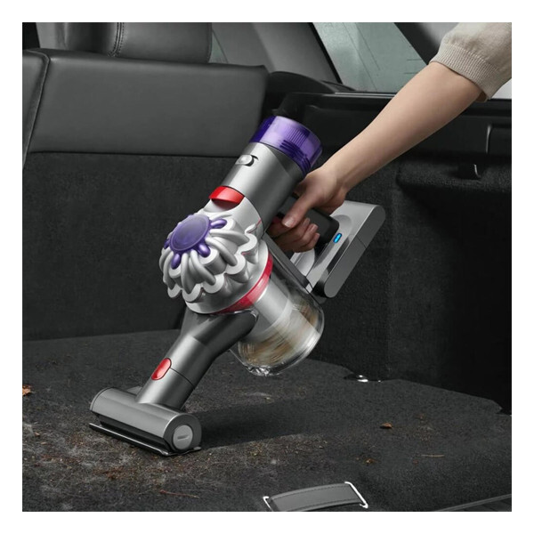 Двигатель Dyson V8 вращается со скоростью до 110 тысяч оборотов в минуту и обеспечивает силу всасывания до 110 Вт. Что вполне сравнимо со многими «проводными» собратьями.