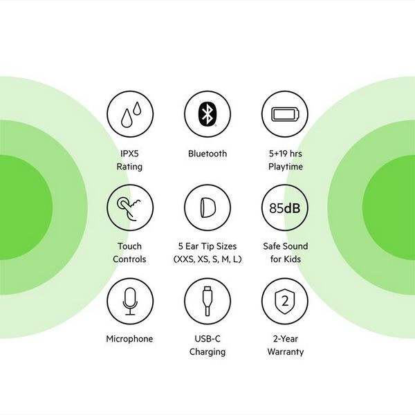 Обеспечьте комфорт и защиту ушей ваших детей с помощью этих герметичных внутриканальных наушников Bluetooth премиум-класса. Эти наушники со встроенным микрофоном, радиусом действия Bluetooth до 30 футов (10 м) и временем автономной работы в течение 24 часов созданы для того, чтобы оставаться на связи с вашим ребенком в течение всего дня.