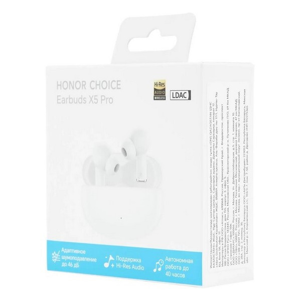 Беспроводные наушники Honor Choice Earbuds X5 Pro BTV-ME10 (5504AALJ) White – это TWS-наушники с гибридным шумоподавлением. В комплект устройства входят два наушника и зарядный чехол. X5 Pro можно подключать к другим устройствам с поддержкой Bluetooth (например, мобильным телефонам, планшетам и т.д.) и использовать для совершения звонков и прослушивания музыки. Наушники поддерживают одновременное подключение по Bluetooth к двум устройствам.