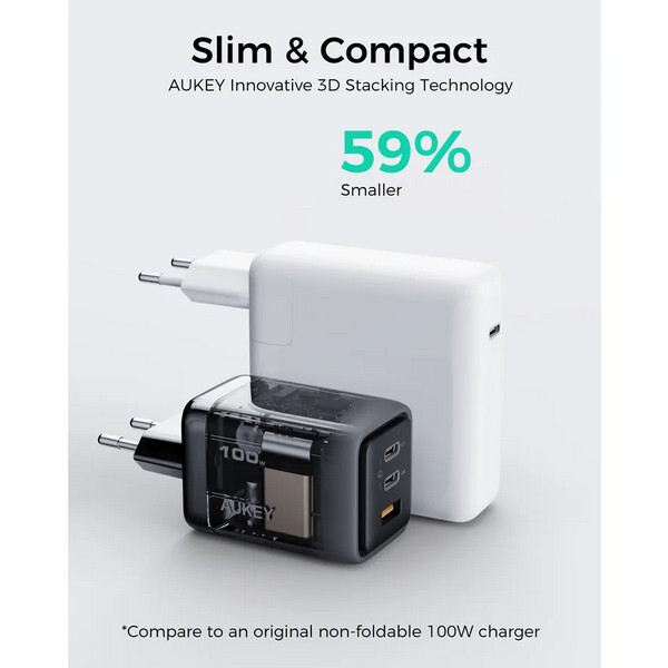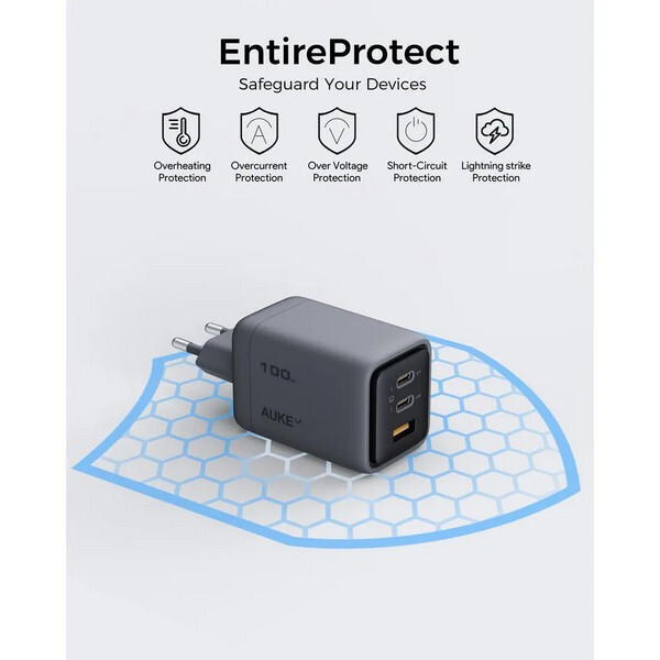 Cетевое зарядное устройство Aukey Comet Mix 100W (PA-C5) Grey совместимо с устройствами с интерфейсами USB Type-C и USB-A.