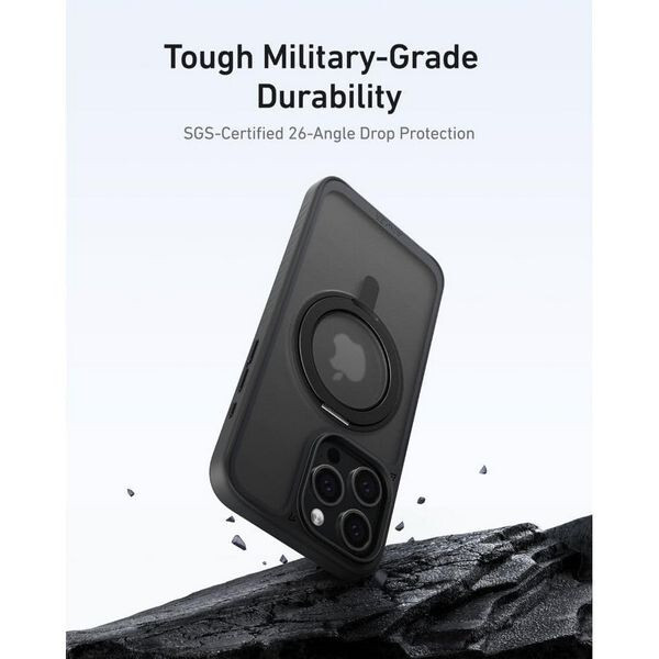 Эргономичное сцепление с защитой от падений: кольцо-держатель чехла обеспечивает легкий захват, а его сертификация SGS гарантирует защиту от падений, сохраняя ваш iPhone в безопасности и сохранности.