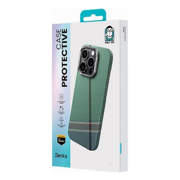 Чехол Benks ArmorAir Case built with Kevlar® 600D для iPhone 16 Pro 6.3" Страстный Зелёный (PassionGreen) создан из прочного материала Kevlar 600D, известного своей высокой стойкостью к износу. Этот материал обеспечивает надежную защиту устройства от повседневных царапин, ударов и других повреждений, оставаясь при этом легким и тонким. Благодаря этому чехол не утяжеляет телефон, а также сохраняет его изящный профиль.