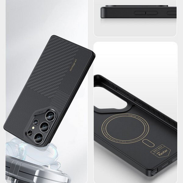 Чехол Benks ArmorPro Montage MagSafe для Samsung Galaxy S25 Ultra черный кевлар, выполненный из прочного волокна DuPont Kevlar 600D и 1500D, сочетает в себе максимальную защиту и минималистичный стиль. Этот чехол разработан для тех, кто ценит надежность и элегантность, обеспечивая защиту устройства в любых условиях. Совместимость с MagSafe делает его удобным для использования с беспроводными зарядками и аксессуарами.