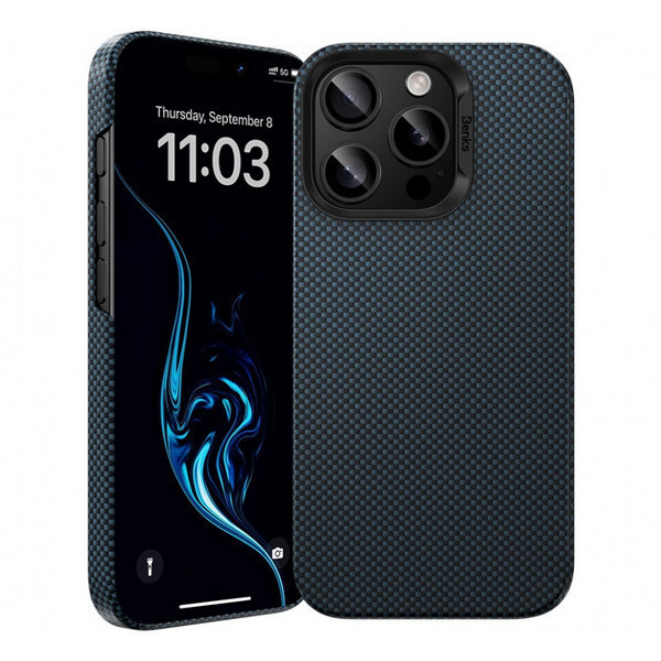 Изготовленный из прочного арамидного волокна Kevlar, чехол обладает высокой устойчивостью к ударам и повреждениям, оставаясь при этом легким и тонким. Его эргономичная конструкция сохраняет естественный вид устройства, обеспечивая комфортное использование без лишнего объема. Полная совместимость с MagSafe делает его удобным для беспроводной зарядки и аксессуаров.