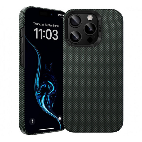 Изготовленный из прочного арамидного волокна Kevlar, чехол обладает высокой устойчивостью к ударам и повреждениям, оставаясь при этом легким и тонким. Его эргономичная конструкция сохраняет естественный вид устройства, обеспечивая комфортное использование без лишнего объема. Полная совместимость с MagSafe делает его удобным для беспроводной зарядки и аксессуаров.