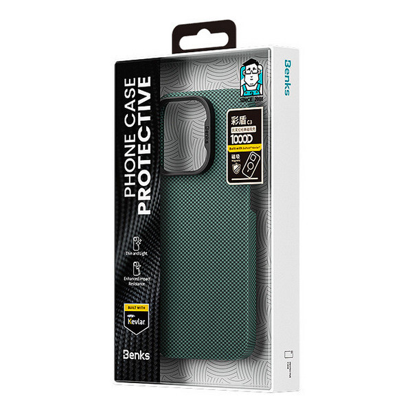 Изготовленный из прочного арамидного волокна Kevlar, чехол обладает высокой устойчивостью к ударам и повреждениям, оставаясь при этом легким и тонким. Его эргономичная конструкция сохраняет естественный вид устройства, обеспечивая комфортное использование без лишнего объема. Полная совместимость с MagSafe делает его удобным для беспроводной зарядки и аксессуаров.