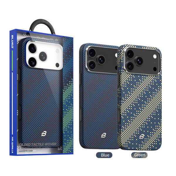 Чехол BlueO Gilded Tactile Woven Galaxy Aramid Fiber Magnetic Case для iPhone 17 Pro Galaxy Green (BL065-17pro-Green) - откройте для себя воплощение защиты и стиля с магнитным чехлом Blueo. Изготовленный из высококачественного плетеного арамидного волокна, этот чехол обеспечивает не только непревзойденную прочность, но и роскошные тактильные ощущения. Встроенная функция магнитного крепления обеспечивает идеальную совместимость со всеми аксессуарами MagSafe. Повысьте уровень защиты и эстетики своего устройства с магнитным чехлом Blueo Gilded Tactile Woven Aramid Fiber Magnetic Case для iPhone.