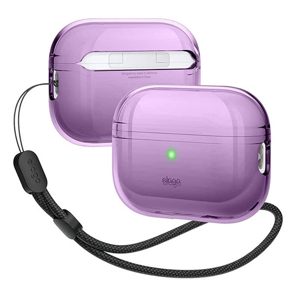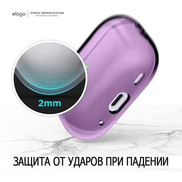 Чехол Elago Clear case with Round strap для AirPods Pro 2 (2022) (EAPP2CL-BA+ROSTR-DPU) фиолетовый изготовлен из полупрозрачного термопластичного полиуретана, который, в отличии от аналогичных материалов, менее подвержен пожелтению. Изделие плотно облегает футляр наушников и отлично защищает его от царапин, потертостей и иных повреждений. Тонкие стенки кейса не придают объем, легко очищаются от загрязнений и обеспечивают комфортную ежедневную эксплуатацию. Внутри изделия расположена перфорированная сеточка, которая предотвращает скопление конденсата и помогает избежать прилипания чехла к футляру. Благодаря полупрозрачному цвету корпуса чехол полноценно пропускает свет LED-индикатора. Модель оснащена текстильным регулируемым шнурком, который удобно носить на руке, предотвращая потерю устройства. Чехол имеет отверстия для динамиков, шнурка и проводной зарядки. Крышка крепится за счет нескользящего покрытия на внутренней поверхности, достаточно просто прижать ее. Для более плотной фиксации крышки в комплекте предусмотрены две прозрачные наклейки.