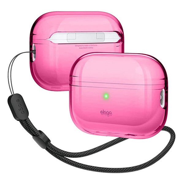 Чехол Elago Clear case with Round strap для AirPods Pro 2 (2022) (EAPP2CL-BA+ROSTR-NHP) неоновый розовый изготовлен из полупрозрачного термопластичного полиуретана, который, в отличии от аналогичных материалов, менее подвержен пожелтению. Изделие плотно облегает футляр наушников и отлично защищает его от царапин, потертостей и иных повреждений. Тонкие стенки кейса не придают объем, легко очищаются от загрязнений и обеспечивают комфортную ежедневную эксплуатацию. Внутри изделия расположена перфорированная сеточка, которая предотвращает скопление конденсата и помогает избежать прилипания чехла к футляру. Благодаря полупрозрачному цвету корпуса чехол полноценно пропускает свет LED-индикатора. Модель оснащена текстильным регулируемым шнурком, который удобно носить на руке, предотвращая потерю устройства. Чехол имеет отверстия для динамиков, шнурка и проводной зарядки. Крышка крепится за счет нескользящего покрытия на внутренней поверхности, достаточно просто прижать ее. Для более плотной фиксации крышки в комплекте предусмотрены две прозрачные наклейки.
