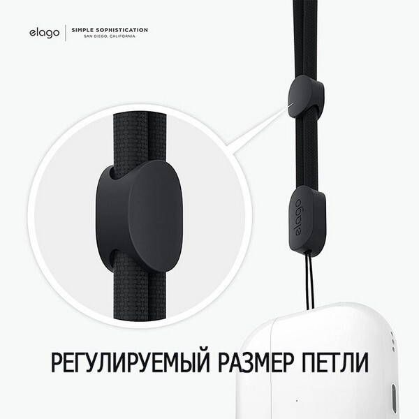 Прозрачный чехол из плотного силикона плотно облегает кейс, при этом сохраняя все его функции. Такой материал отлично защищает от различных царапин, потертостей и прочих повреждений, легко очищается от загрязнений. Перфорированная сетка, расположенная внутри, предотвращает появление конденсата и помогает избежать прилипания чехла к футляру. Для возможности проводной зарядки предусмотрена прорезь для кабеля. Крышка крепится за счет нескользящего покрытия на внутренней поверхности, достаточно просто прижать ее. Прочный нейлоновый ремешок убережет ваши AirPods от случайных падений. Размер петли можно настроить с помощью регулировочной кнопки.