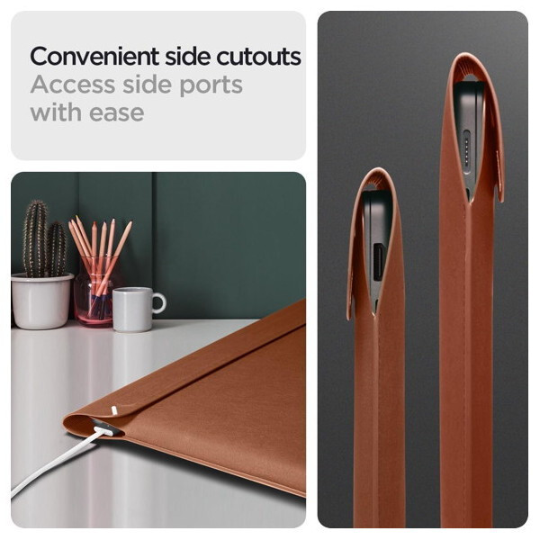 Но на этом преимущества не заканчиваются. Благодаря продуманным вырезам для порта HDMI и зарядки, доступ к периферийным устройствам или зарядке устройства становится легким. Вам не придется доставать ноутбук из защитного чехла для зарядки. А благодаря встроенному магнитному клапану ваше устройство надежно удерживается на месте, защищая от случайных скольжений или падений. Это больше, чем просто аксессуар, в чехле для ноутбука Spigen Valentinus безупречно сочетается практичность и стиль, что делает его незаменимым спутником как всех пользователей.