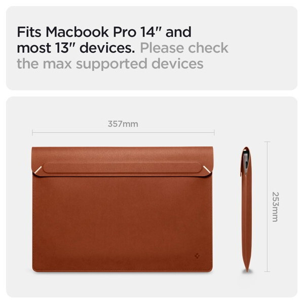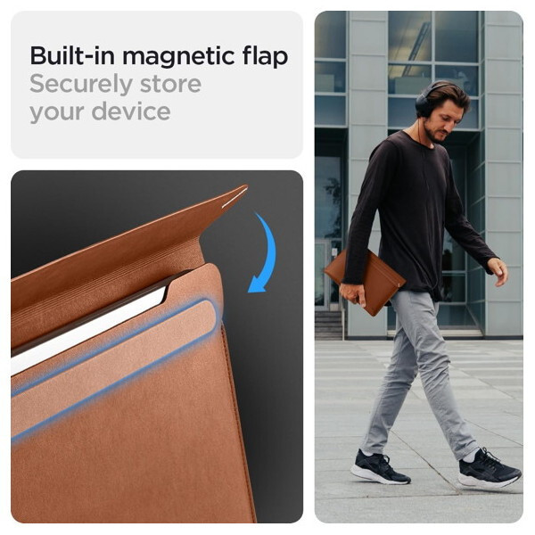 Чехол-папка Spigen Valentinus для MacBook 13-14" (AFA06416) Classic Brown - воплощение прочной защиты и изящного дизайна для вашего ноутбука. Изготовлен из высококачественных материалов, чехол обеспечивает надежную защиту от царапин, пыли и ударов. А прочный магнитный клапан предотвращает случайное выпадение гаджета.