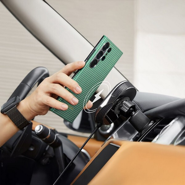 Благодаря высокотемпературному формованию в вакууме корпус чехла из арамидного волокна имеет уникальную текстурированную поверхность, которая не только придает ему внешнюю привлекательность, но и не даст телефону соскользнуть со стола.
