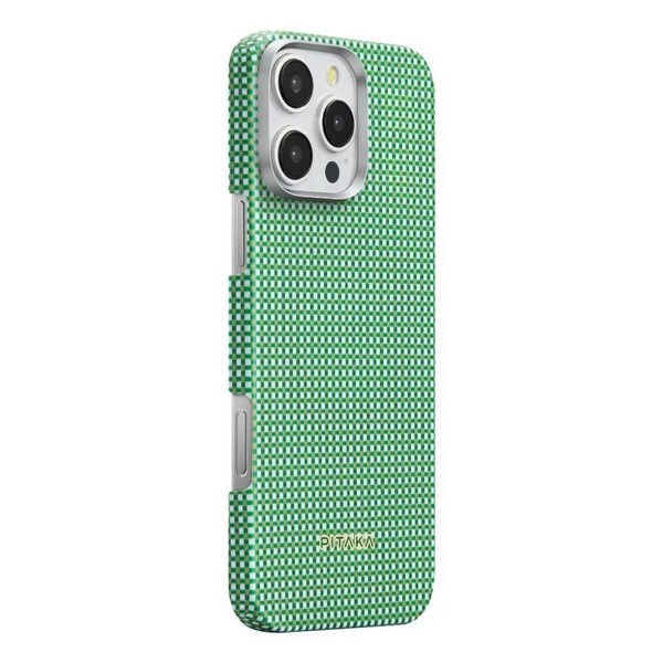 Чехол Pitaka Ultra-Slim Case для iPhone 16 Pro Max 6.9" Зеленый (Forest Green) KI1602PFOR, сотканный из арамидного волокна, прочного, но легкого материала, который обычно используется в аэрокосмической и военной технике, обеспечивает исключительную прочность, легкость и устойчивость к царапинам, коррозии и обесцвечиванию. В отличие от углеродного волокна, он не будет мешать сигналу и не проводит ток, обеспечивая длительную защиту вашего телефона. Чехол разработан для надежного и удобного хвата благодаря технологии 3D Grip, делающей поверхность чехла гладкой, но нескользящей. Чехол совместим с беспроводной зарядкой MagSafe.