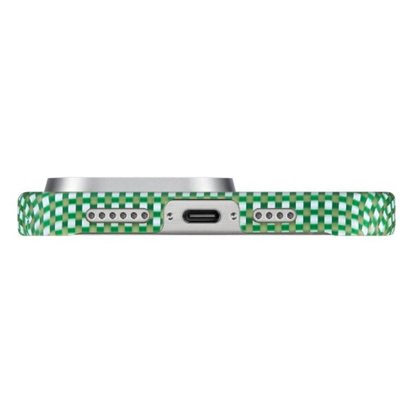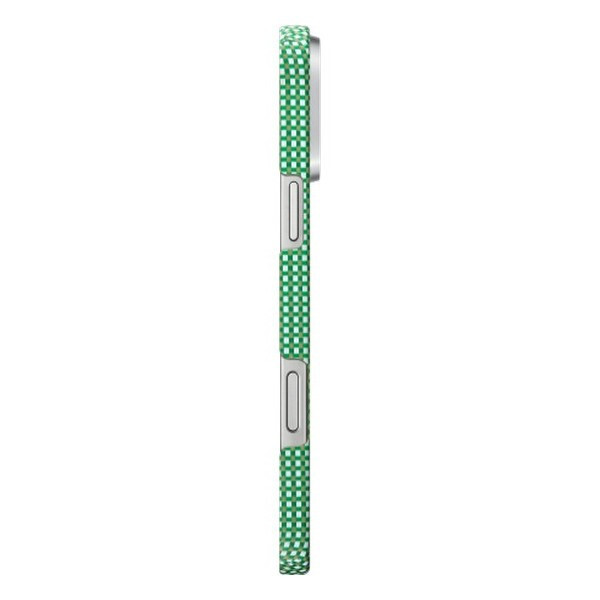 Чехол Pitaka Ultra-Slim Case для iPhone 16 Pro Зеленый (Forest Green) KI1601PFOR, сотканный из арамидного волокна, прочного, но легкого материала, который обычно используется в аэрокосмической и военной технике, обеспечивает исключительную прочность, легкость и устойчивость к царапинам, коррозии и обесцвечиванию. В отличие от углеродного волокна, он не будет мешать сигналу и не проводит ток, обеспечивая длительную защиту вашего телефона. Чехол разработан для надежного и удобного хвата благодаря технологии 3D Grip, делающей поверхность чехла гладкой, но нескользящей. Чехол совместим с беспроводной зарядкой MagSafe.