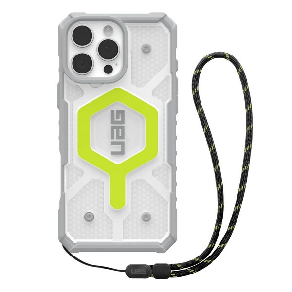 Чехол + ремешок UAG Pathfinder MagSafe для iPhone 16 Pro Max неон (Active Neon Lanyard) 1144651BV01 - идеальный выбор для тех, кто ищет прочную и надежную защиту, готовую к любым приключениям. Этот чехол сочетает в себе ультралёгкий броневой корпус и ударопрочную рамку с шестигранной структурой, обеспечивая превосходную защиту от падений и ударов. Приподнятые края экрана защищают дисплей от случайных повреждений, а прочные TPU-бамперы добавляют дополнительную защиту углов устройства.