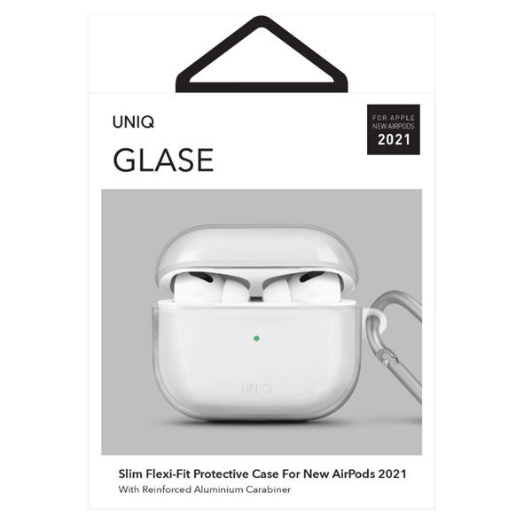Чехол с карабином Uniq Glase TPU case для AirPods 3 - очень тонкий, сверхлегкий и приятный на ощупь, чехол плотно облегает футляр беспроводной гарнитуры, при этом сохраняя все его функции. Вы можете переносить свои наушники в сумке со множеством различных мелочей, чехол Uniq Glase не допустит появления царапин и потертостей на корпусе футляра. Модель отличается удобством в использовании и оснащена алюминиевым креплением-карабином для комфортной транспортировки.
