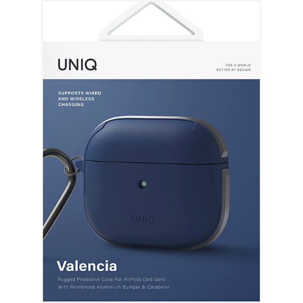 Чехол с карабином Uniq Valencia TPU/Aluminium bumper для AirPods 3 (AIRPODS(2021)-VALBLU), синий