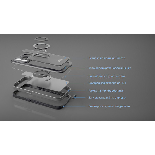 Чехол соответствует классу защиты IP68, поэтому дождь, снег, брызги не грозят смартфону с такой защитой. Составные части дополнены уплотнителями, а для разъёма зарядки предусмотрена встроенная резиновая заглушка. Кроме того, Phone Case Xtreme соответствует военному стандарту MIL-STD 810G и эффективно смягчает удары за счёт многослойной гибридной конструкции.