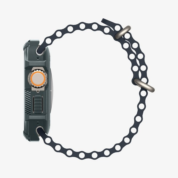 Чехол Spigen Rugged Armor для Apple Watch Ultra 49мм (ACS07383) зеленый специально создан, чтобы обеспечить эффективную защиту от ударов и возможных повреждений ваших Apple Watch Ultra 49мм. Плотный износостойкий TPU обладает высокими амортизационными свойствами и не допускает разрушающего воздействия на часы. Приподнятые края бампера предотвращают появление царапин и затертостей при ежедневном использовании, а сама защитного кейса учитывает полный доступ к необходимому функционалу, поэтому имеет точные вырезы. Чехол выполнен в современном дизайне с матовым покрытием и необычайно подчеркнет ваш стиль.