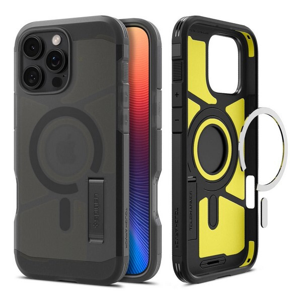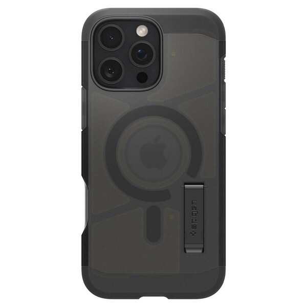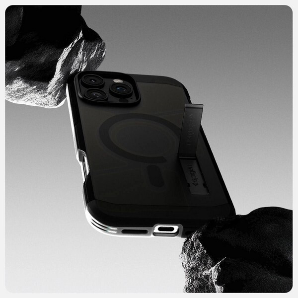 Чехол Spigen Tough Armor MagSafe для iPhone 16 Pro (ACS08509) Frost Black, отличающийся высокой прочностью и в то же время большим удобством использования благодаря встроенному магнитному кольцу, делающему чехол совместимым с аксессуарами серии Apple MagSafe. Кроме того, встроенный KickStand в разложенном виде позволяет расположить телефон в горизонтальном положении для более удобного просмотра мультимедиа. Гибридный корпус сочетает в себе внутренний слой из термопластичного полиуретана и внешнюю панель из твердого поликарбоната. Дополнительно салон дополнен тонким слоем амортизирующей пены, но, несмотря на бронированную конструкцию, корпус сохраняет стильный внешний вид и отлично смотрится в повседневном использовании.