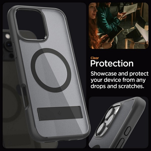Чехол Spigen Ultra Hybrid S MagSafe для iPhone 16 Pro Max (ACS08377) Frost Black - это оптимальный чехол для демонстрации элегантного дизайна iPhone, в то же время обеспечивающий ему защиту на самом высоком уровне. Изготовлен из прочного гибкого материала TPU, который обеспечивает отличную амортизацию, и дополнен прочной поликарбонатной панелью, которая защищает от царапин. Чехол не ограничивает доступ к внешним портам и эффективно защищает ваш телефон во время падений.