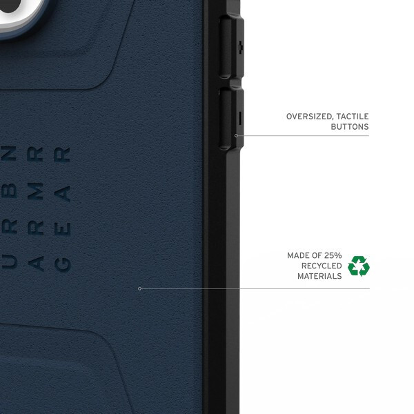 Чехол Civilian выполнен с использованием тройного литья под давлением и оснащен амортизирующим ядром с шестигранной структурой, что гарантирует защиту от падений с высоты до 6 метров. Приподнятые края защищают экран от царапин и ударов, а антискользящее покрытие обеспечивает надежный захват устройства в руке. Крупные тактильные кнопки обеспечивают удобное и точное управление, так что вы всегда будете на связи.