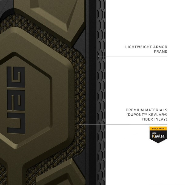 Основу защиты составляет ударопрочный сердечник, который поглощает и равномерно распределяет силу удара. Каркас усилен вставкой из DuPont Kevlar для дополнительной прочности, а поликарбонатная пластина придаёт жёсткость и устойчивость к царапинам. Гибкий резиновый контур смягчает удары, а специальный контурный край с противоскользящим покрытием обеспечивает надёжный захват.